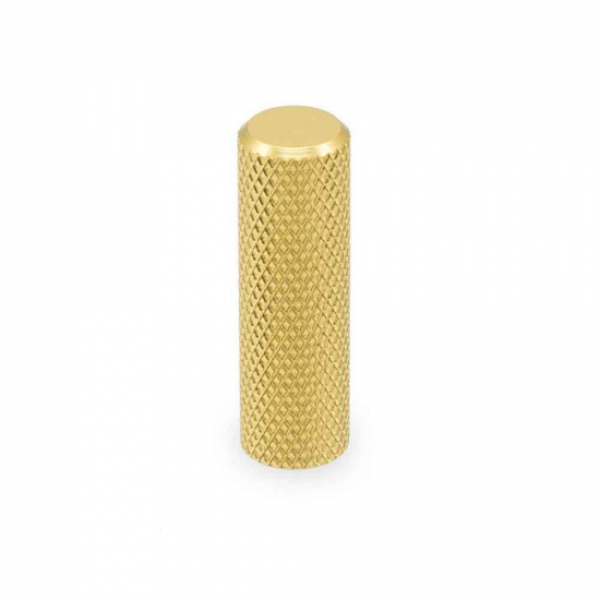 Un bouton d'armoire moleté mince avec un sens brut d'industrialisme élégant. Disponible en trois couleurs différentes, laiton, noir et acier inoxydable. S'adapte bien à la poignée Graf Mini.