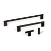 Un bouton d'armoire en forme de T avec un sens brut d'industrialisme élégant. Disponible en trois couleurs différentes, laiton, noir et acier inoxydable. S'adapte bien à la poignée Graf Mini.