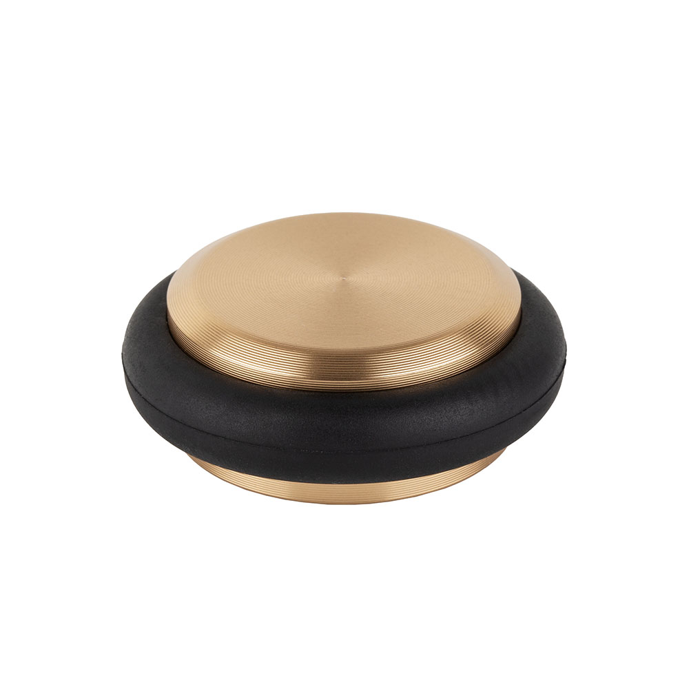 Son design rappelle les disques CD et vinyles et s'inspire des parties rondes d'une table de mixage. Le butoir de porte s'intègre parfaitement dans toutes les pièces de la maison et est monté au sol avec des vis.