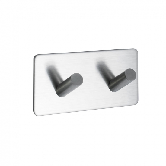 Base est une série d'accessoires de salle de bain entièrement fabriqués en acier inoxydable et dotés d'un ruban autocollant au dos qui rend le montage simple et se monte sans forage. Base 200 2 crochets est disponible en quatre modèles différents : Chrome, acier inoxydable brossé, noir mat et laiton.