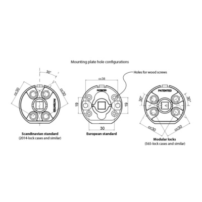 La norme scandinave (boîtier de serrure 2014 ou similaire) et la norme européenne conviennent aux portes ayant une épaisseur de vantail de 35 à 48 mm. Plaque de clé standard, kit de conversion et kit de montage complet sont inclus.