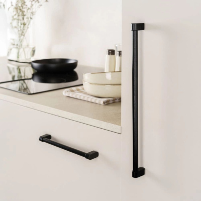 La poignée Linkk en noir brassé a un design bien équilibré avec des formes arrondies. Son aspect minimaliste donne une sensation de légèreté, presque comme s'il flottait.