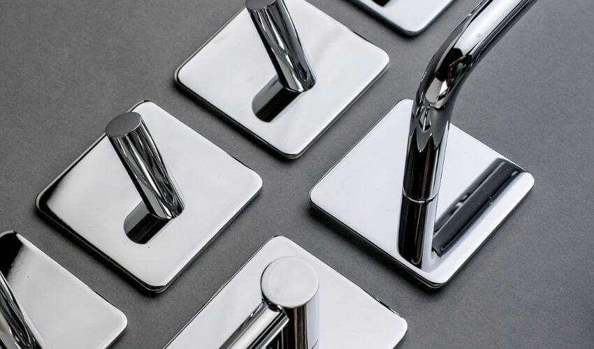 Voulez-vous avoir une nouvelle salle de bains avec de petits détails? Nous avons simplifié la tâche et dans notre kit de salle de bain, vous trouverez tout ce dont vous avez besoin pour votre salle de bain. Nos ensembles de salle de bain comprennent des accessoires de salle de bain tels que des patère adhésive, une brosse de toilette, un porte-papier de rechange et un porte papier toilette. Tous les produits sont dotés d'un ruban adhésif 3M au dos, ce qui les rend faciles à installer sans aucun outil ni perçage de trous dans le mur. Nos kits sont disponibles en 4 modèles différents: chrome, noir mat, acier inoxydable et laiton poli, afin que vous puissiez facilement trouver un ensemble de salle de bain adapté à votre intérieur et à votre style.