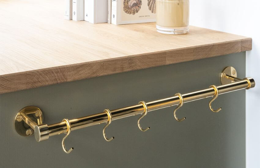 Pour ceux qui souhaitent maximiser le rangement dans la cuisine, nous proposons également des barres de cuisine avec crochets. Une barre de cuisine est idéale pour suspendre ustensiles, louches, casseroles ou torchons, tout en libérant de l’espace sur le plan de travail. Nos barres de cuisine en noir, inox et laiton sont conçues pour s’accorder avec les autres poignées, boutons et accessoires afin de créer une atmosphère homogène et élégante dans la cuisine.